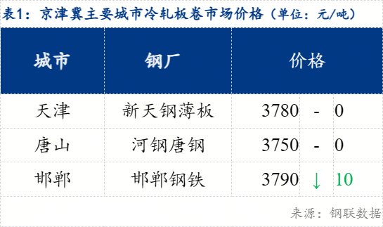 今日邯郸价格下跌10元/吨,现1.0mm天津新天钢薄板3780元/吨,唐山唐钢3750元/吨,邯郸邯郸钢铁(600001)3790元/吨。