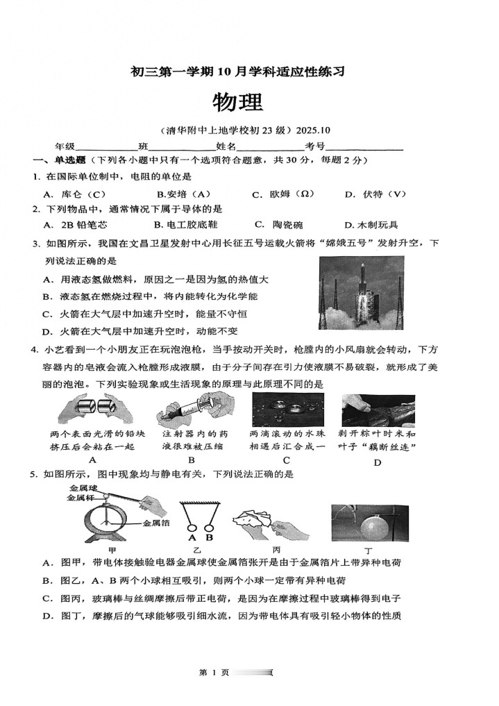配资炒股开户方案清华大学附属中学2025-2026学年上学期九年级物理10月月考试题 配资炒股开户方案 来源:炒股哪个平台好 网站:十大股票配资网站 日期:2025-10-23 06:15:04 查看:164
