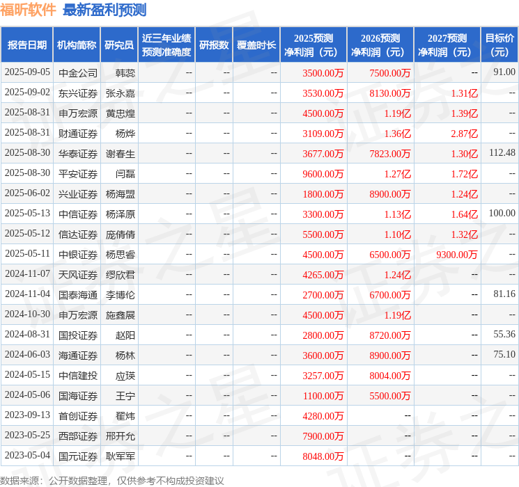 以下是详细的盈利预测信息: